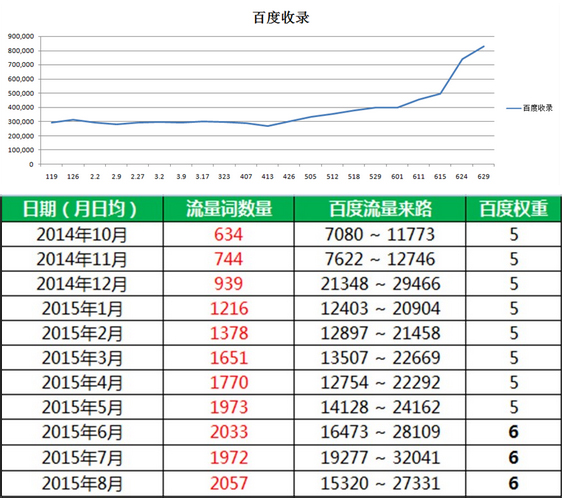 自然搜索uv从提升300%以上,网站百度权重从5增至6。